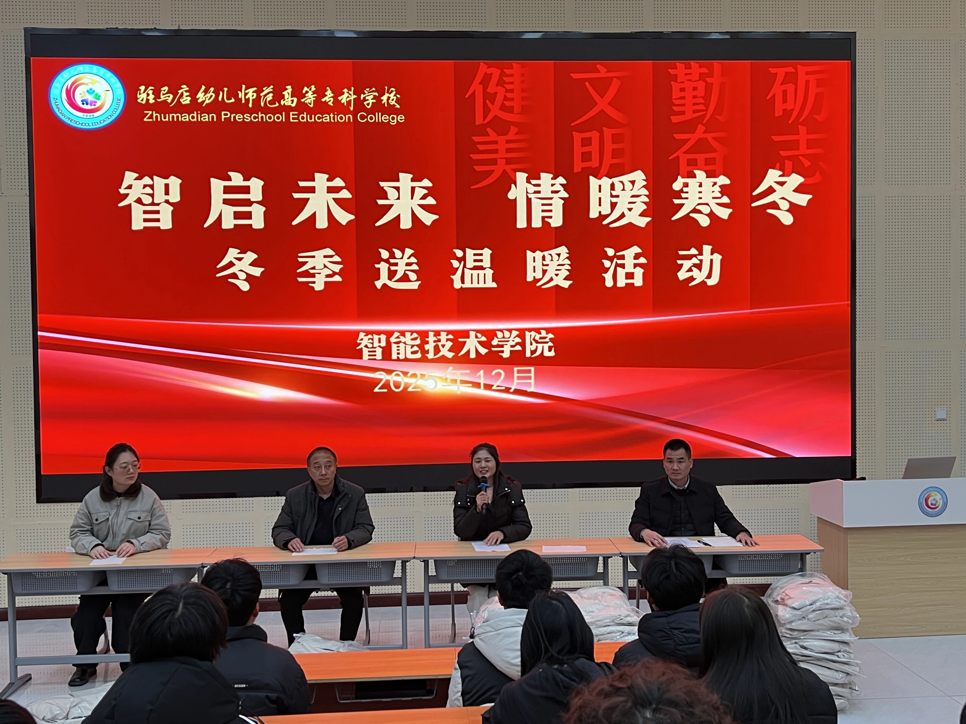 寒冬送暖,真情相伴。12月25日,智能技术学院“智启未来 情暖寒冬”冬季关怀活动在6111教室举行。学院党总支书记张静莉、院长罗群会带领学生工作科工作人员,与大家亲切相聚,共同为家庭经济困难学生发放御寒棉衣,在凛冽冬日里送去学院的殷切关怀与温暖祝福。
