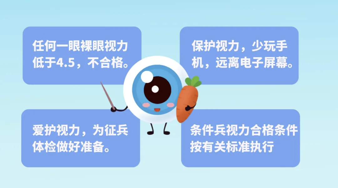 大家可以根据《应征公民体格检查标准》摘要里的要求对自己的身体情况进行评估,身体有问题的可提前去医院进行治疗,尤其是需要做近视手术的小伙伴,需要提前半年进行屈光不正经准分子手术。