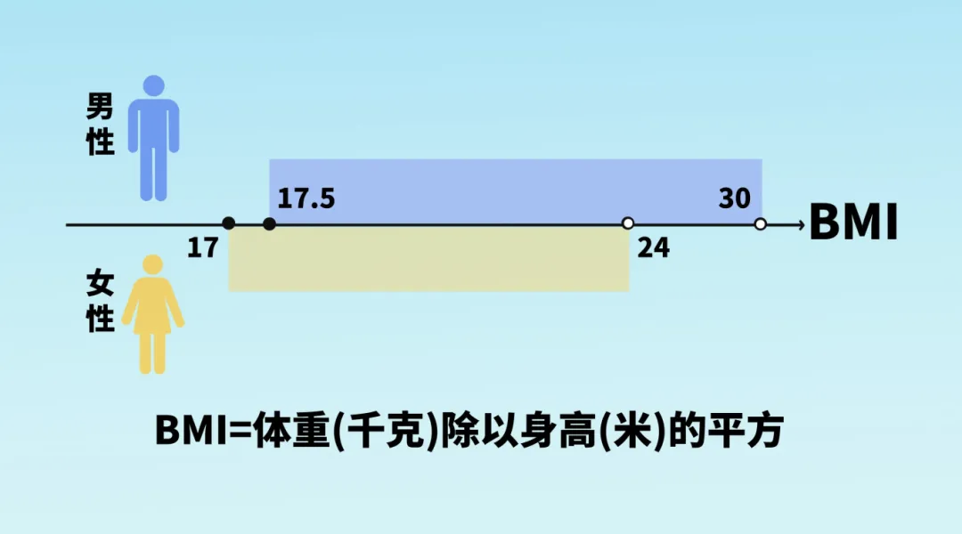 3)女性:17≤BMI<24。