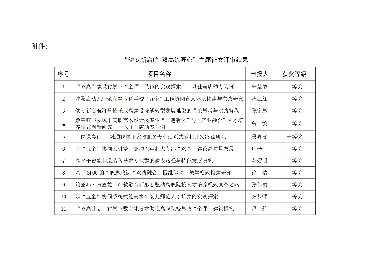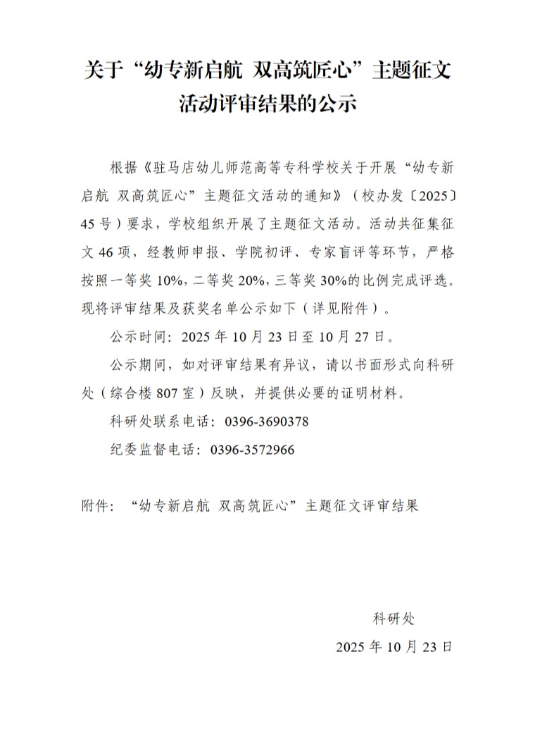 关于“幼专新启航双高筑匠心”主题征文活动评审结果的公示
