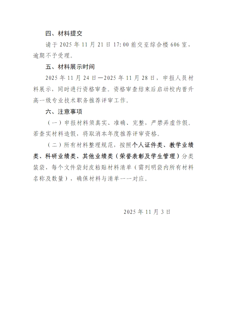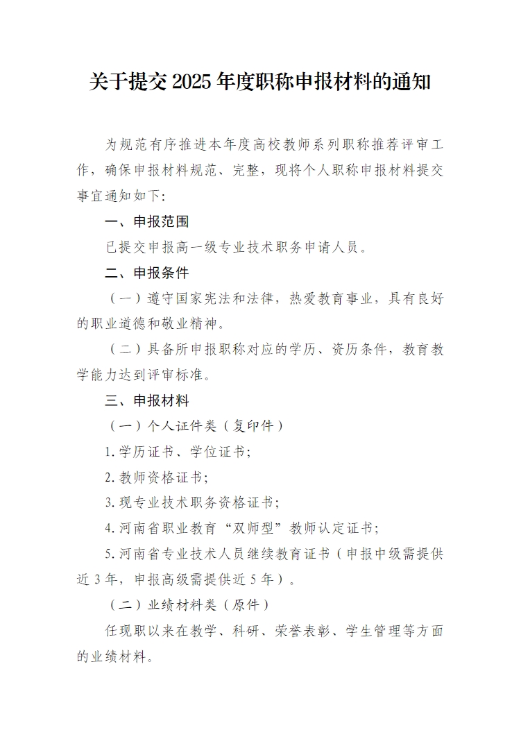 关于提交2025年度职称申报材料的通知