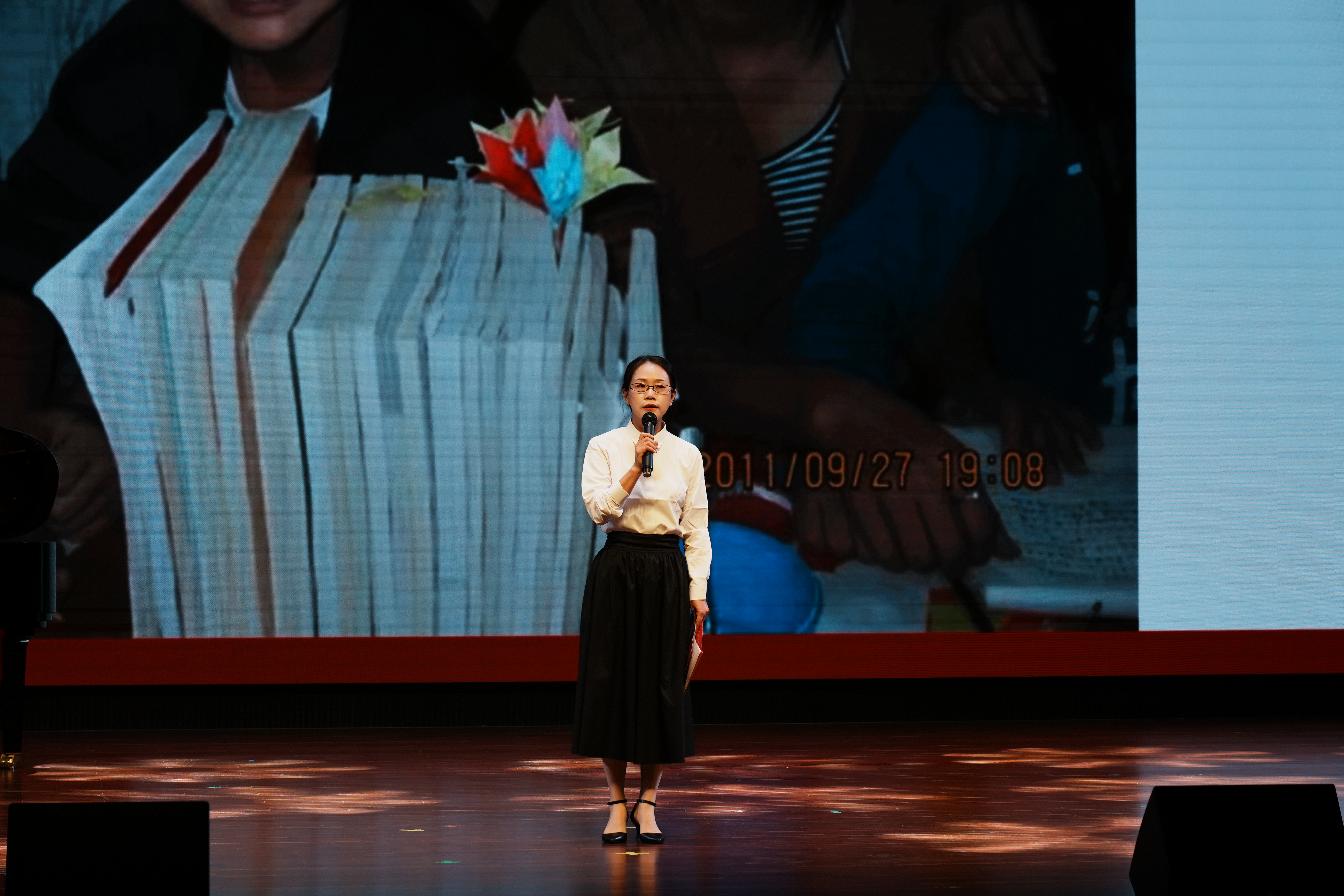音乐党课以“时间轴线”为脉络,分为“峥嵘岁月”“家国情怀”“艺心向党”三个篇章。开场由青年教师演唱的《杨白劳》,瞬间将观众带入革命时期的苦难岁月;钢琴协奏曲《黄河》以激昂的旋律,生动诠释了中华儿女在党的领导下不屈抗争的精神;情景剧《绣红旗》细腻的还原狱中党员对信仰的坚守;改编朗诵《英雄》声情并茂,讲述了英雄是历史长河中最闪耀的星辰,他们以无畏的勇气和坚定的信念,书写了无数辉煌的篇章;古筝合奏曲《满江红》以激昂的曲调、雄浑的气势,表达了深沉的爱国情怀,让音乐成为“听得见的党史”。